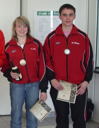 Tina Barthel (Bild links), Johannes Preis und Benedikt Hanft sicherten sich in ihren Altersklassen die Titel. Tina Barthel (Mädchen U11) gewann ebenso wie Johannes Preis bei den Jungen U15 alle sechs Spiele, Nachwuchstalent Bendedikt Hanft (Jugend U17) ließ der Konkkurenz mit sieben Erfolgen keine Chance. Den Doppelsieg in der Kategorie Jungen U15 machte Marcus Große mit seinem 2. Platz perfekt. In der Kategorie Mädchen U13 erreichte Angelika Otto den dritten Platz. Michael Lehmann und Florian Watterott als 3. und 4. (Jungen U13) konnten ebenfalls überzeugen wie Verena Preis mit dem Silberrang bei den Mädchen U15.