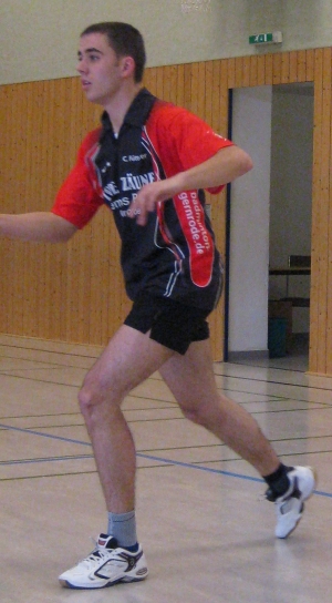 Im Vormittagsduell stand die Partie beim befreundeten Verein SV 1975 Zeulenroda auf dem Programm. Recht schnell stand es durch die Doppelniederlagen von Cornelius Fütterer/Marius Fütterer (gegen Heyn/Stöckel) und Christiane Otto/Melanie Raabe (gegen Kampf/Zehmisch) 2:0 für den Gastgeber. Größeres Interesse weckte das 2. Herrendoppel: Tobias Otto und Steffen Sommer gewannen ihre Partie nach 7:13 Rückstand im 3. Satz mit 27:25/14:21/21:13 gegen Herre/Kowalewicz. Noch besser lief es für Cornelius Fütterer (1. Herreneinzel/Bild links). Genauso überraschend wie souverän besiegte er Heyn in zwei Durchgängen. Auch Elisabeth Preis (Dameneinzel) hatte beste Chancen auf einen Sieg, ihre angeschlagene Gegnerin Kampf machte ihrem Namen jedoch alle Ehre und holte mit 21:18 im 3. Satz den dritten Zähler für die Zeulenrodaer. Der erneute Ausgleich gelang Marius FÜtterer (3. Herreneinzel) problemlos 21:18/21:11 gegen Kowalewicz. Acht Punkte Vorsprung reichten Steffen Sommer gegen Stöckel (2. Herreneinzel) nicht, um Durchgang 1 und möglicherweise das Spiel zu gewinnen. Demzufolge wurde das Mixed zum "Zünglein an der Waage". Tobias Otto und Melanie Raabe machten mit einem ungefährdeten 2-Satz-Erfolg gegen Zehmisch/Herre das Unentschieden perfekt. Kurios dabei: Nicht nur Spiele (4:4) und Sätze (9:9), sondern auch die Punkte (329:329) wurden bis auf den Letzten geteilt. Ein mehr als gerechtes Remis.