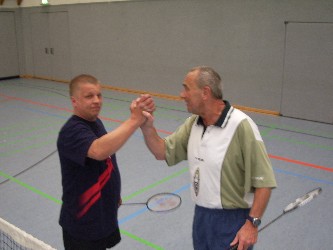 (05.06.06) Traditionsgemäß fanden zu Pfingsten am 04.06. im Rahmen des Gernröder Sportfestes die Dorfmeisterschaften im Badminton statt. Den Anfang machten um 09.00 Uhr in unseren Sporthalle die Kinder in den verschiedenen Altersklassen. Um 14.00 Uhr folgten die Kategorien der Erwachsenen. Hierbei wurde in den Klassen Nichtaktive unter 40 Jahre und über 40 Jahre sowie Freizeitspieler unterschieden. Gerd Hilpert konnte sich schon fast erwartungsgemäß in der Klasse Über 40 durchsetzen. Vor einer voll besetzten Tribüne gewann er das Finale gegen Werner Otto. Martin Otto hatte in der Kategorie Unter 40 die Nase vorn. Bei den Freizeitspielern holte sich Thomas Böhle den Dorfmeistertitel. Die Damenkonkurrenz gewann Anne Fütterer.